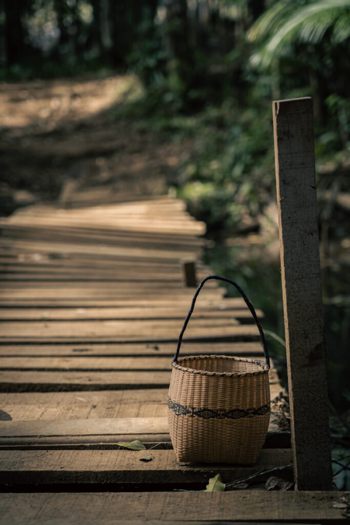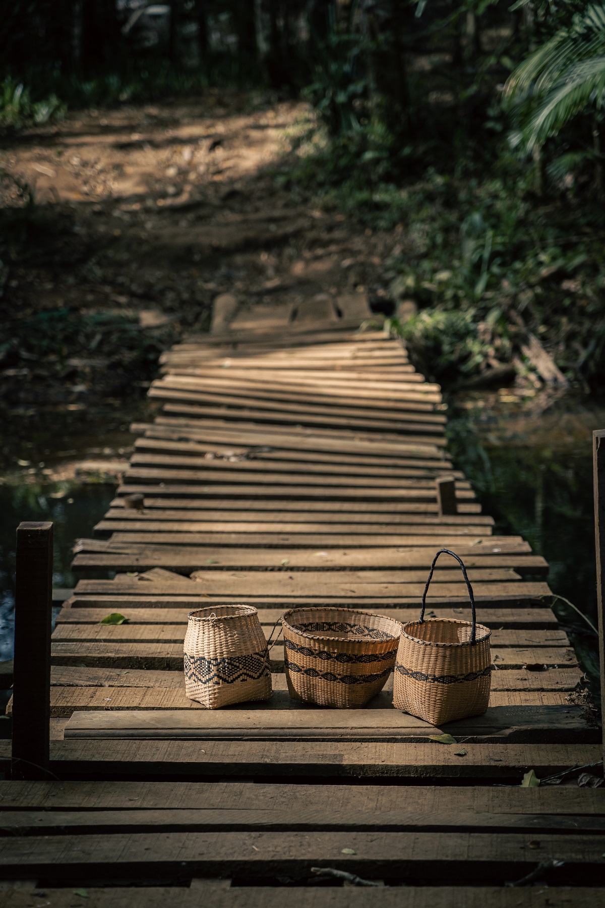 O artesanato faz parte do nhandereko, o modo de ser e viver dos Guarani Mbya e Tupi. As produções articulam uma gama de saberes e práticas tradicionais na sua relação com a terra, a fértil Mata Atlântica, com as suas comunidades e com o que herdaram dos antigos. De certa forma, o artesanato dá forma a um conjunto de saberes e práticas de um povo que soube resistir e florescer, transformando sementes, madeira, penas e miçangas em objetos de singular beleza. Os bichinhos de madeira esculpidos com paciência a partir da Cacheta, as cestas de taquara trançadas com precisão, os colares de sementes coletadas nas trilhas sagradas – tudo isso é mais que artesanato, é a materialização de uma cultura viva que se reinventa a cada dia.