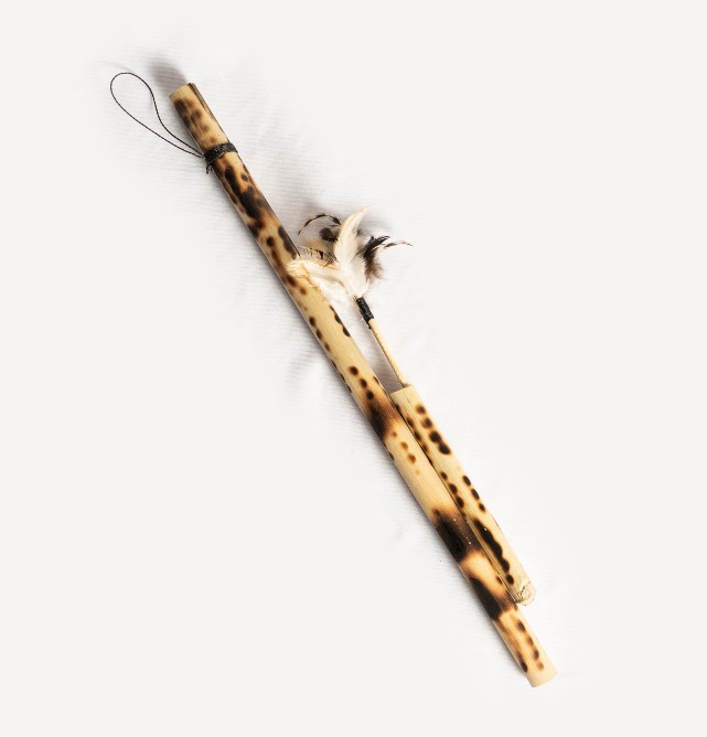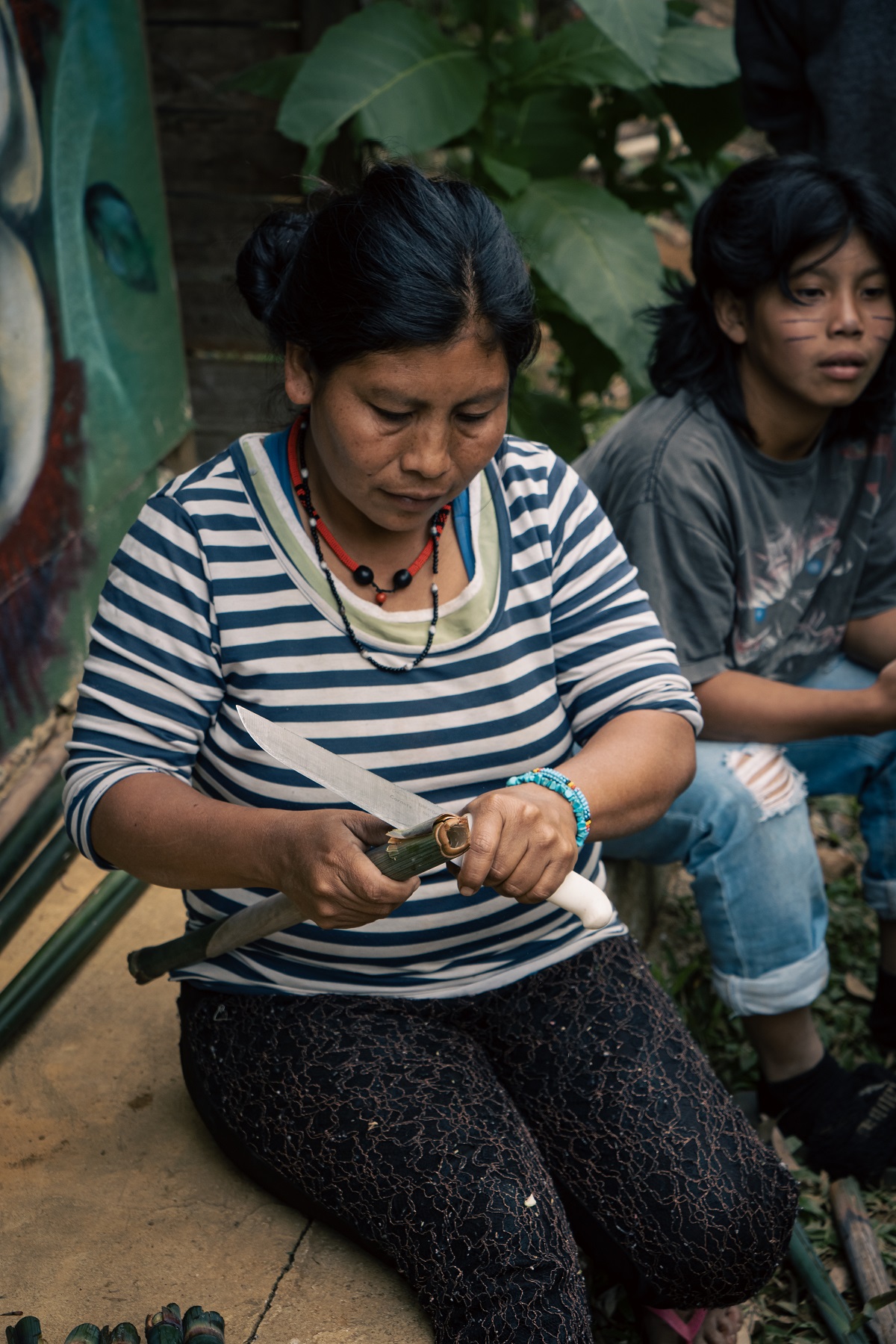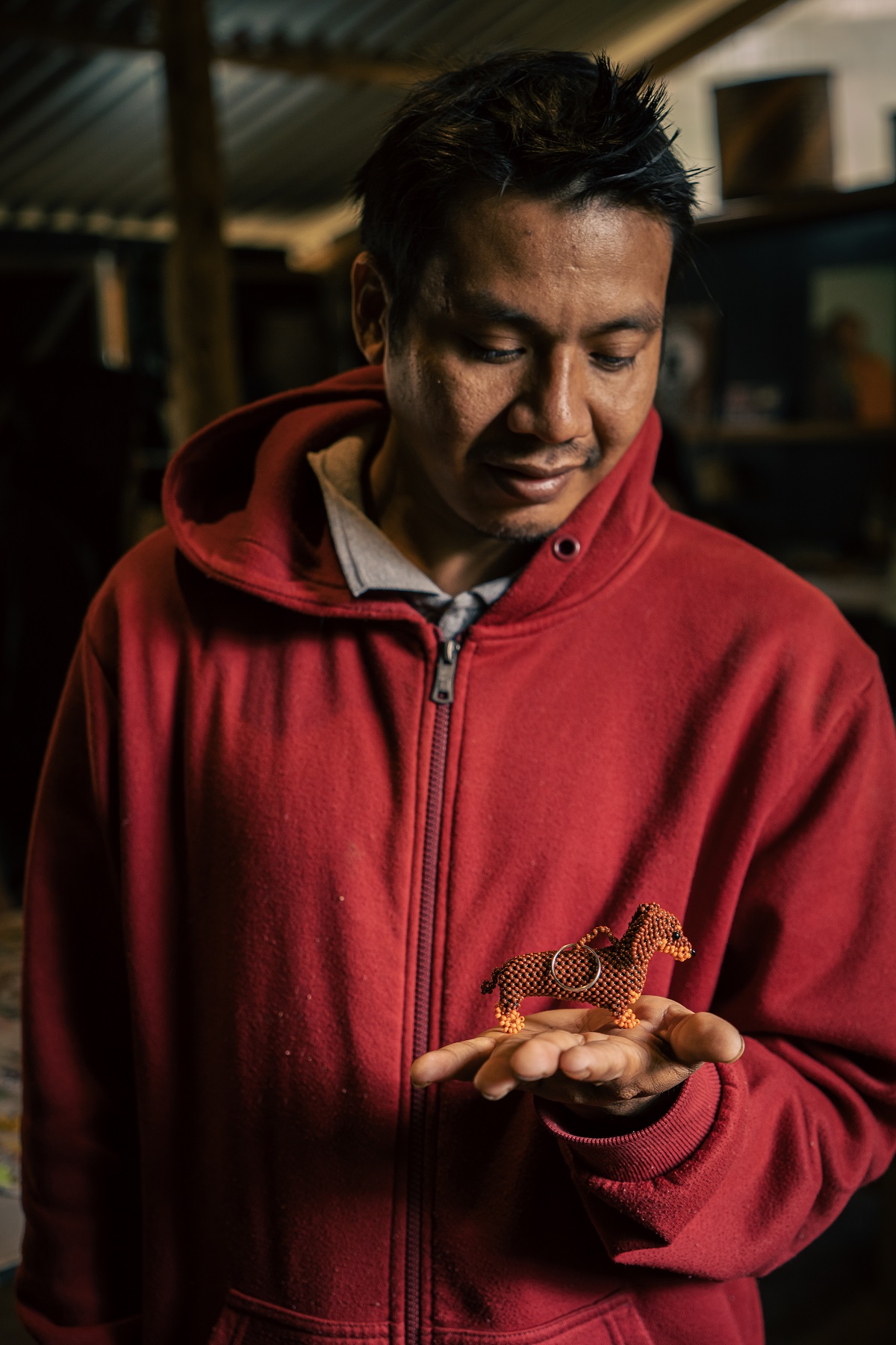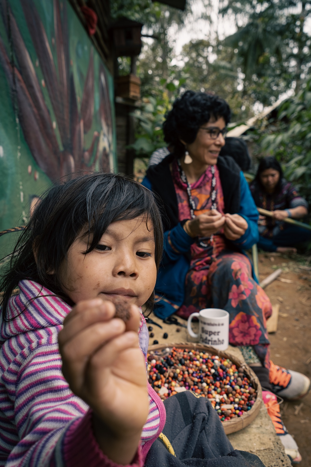 Cada arco e flecha esculpido, cada zarabatana modelada, cada apito entalhado, as pulseiras de miçanga, os brincos de pena, os chaveiros em miniatura são pequenos universos onde tomam forma os modos de ser e viver dos Guarani Mbya e Tupi, para quem a produção artesanal é um ato de amor e resistência.