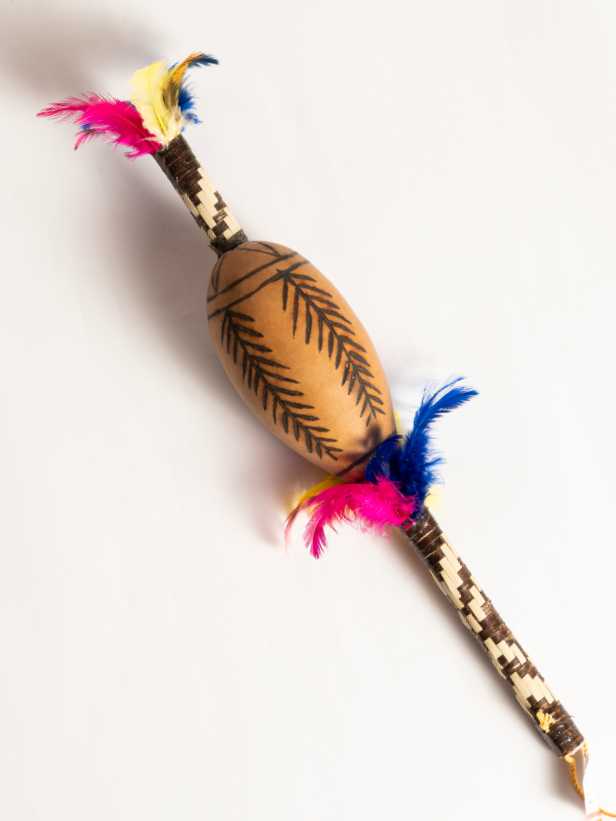 As mãos Guarani Mbya e Tupi criam diversos instrumentos, já que a música é parte fundamental do modo de vida desses povos: os chocalhos são feitos de cabaça ou taquara, o pau de chuva, produzidos com madeira ou trançados com fibras e preenchidos com sementes, a rabeca guarani, a rave’i, é feita em caixeta ou outras madeiras, os tambores angu’apu são produzidos com madeira e peles de animais caçados. Os instrumentos acompanham os cantos e danças em rituais específicos ou cotidianos.