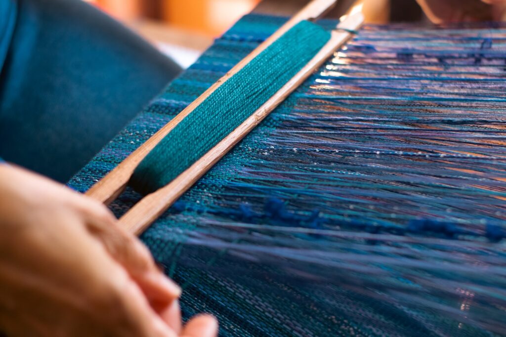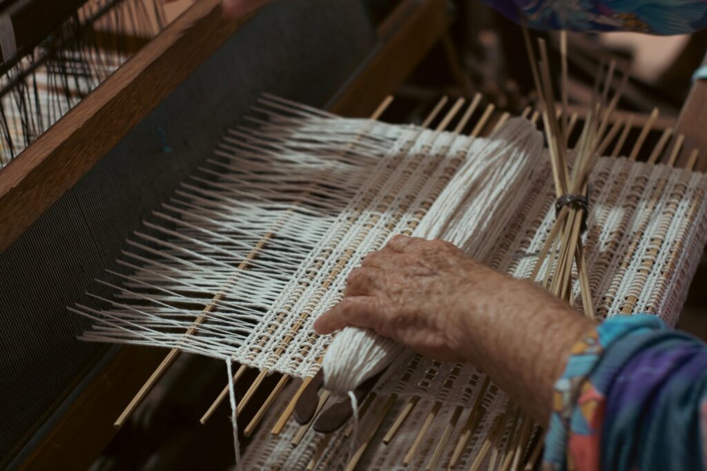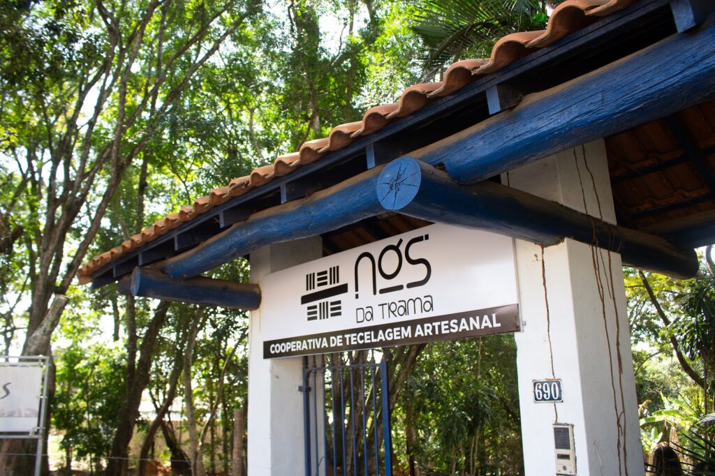 A Cooperativa Nós da Trama utiliza diferentes tipos de teares para atender pedidos e manter seu estoque de peças. Trabalham com tear de pedal de quatro quadros quando a peça requer desenhos, e com o tear de pente liço produzem uma grande variedade de produtos, como esteiras, jogos-americanos, peseiras, bolsas e chales.