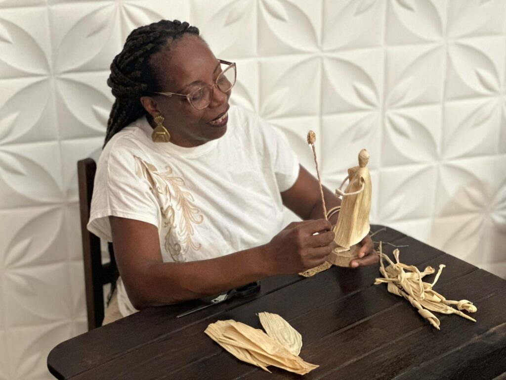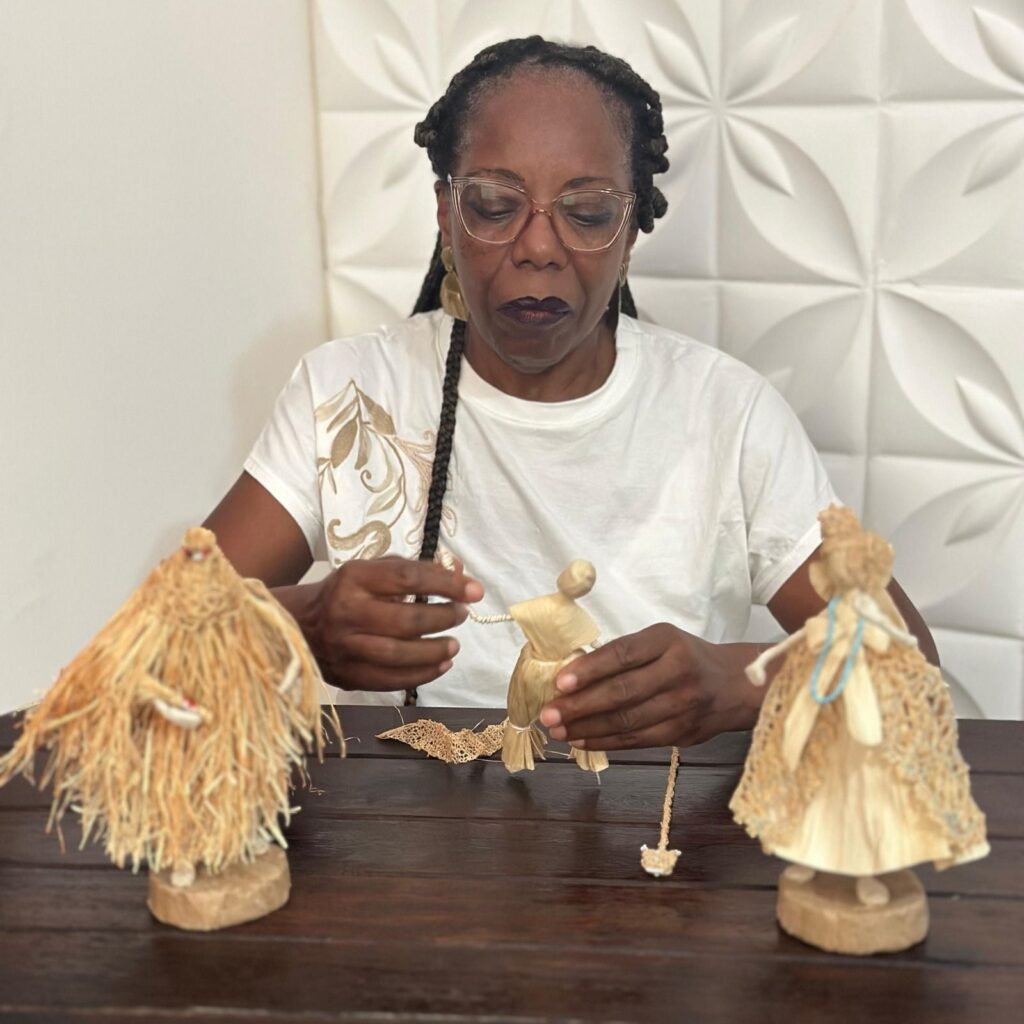 Ela é uma artista ímpar no trabalho com palha de milho, o que traz mais relevância ao seu trabalho na cidade de Salvador.