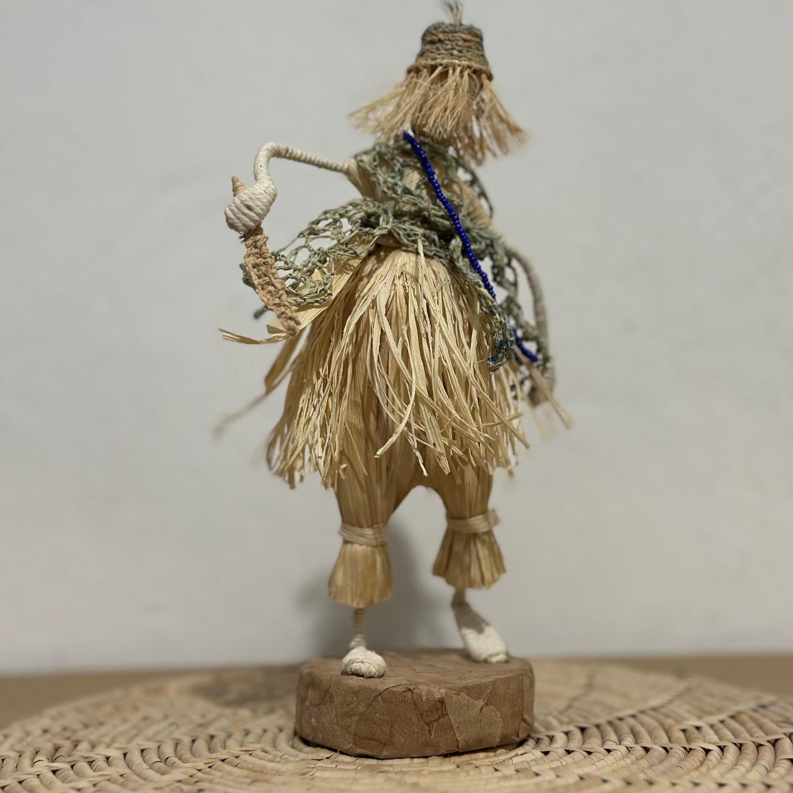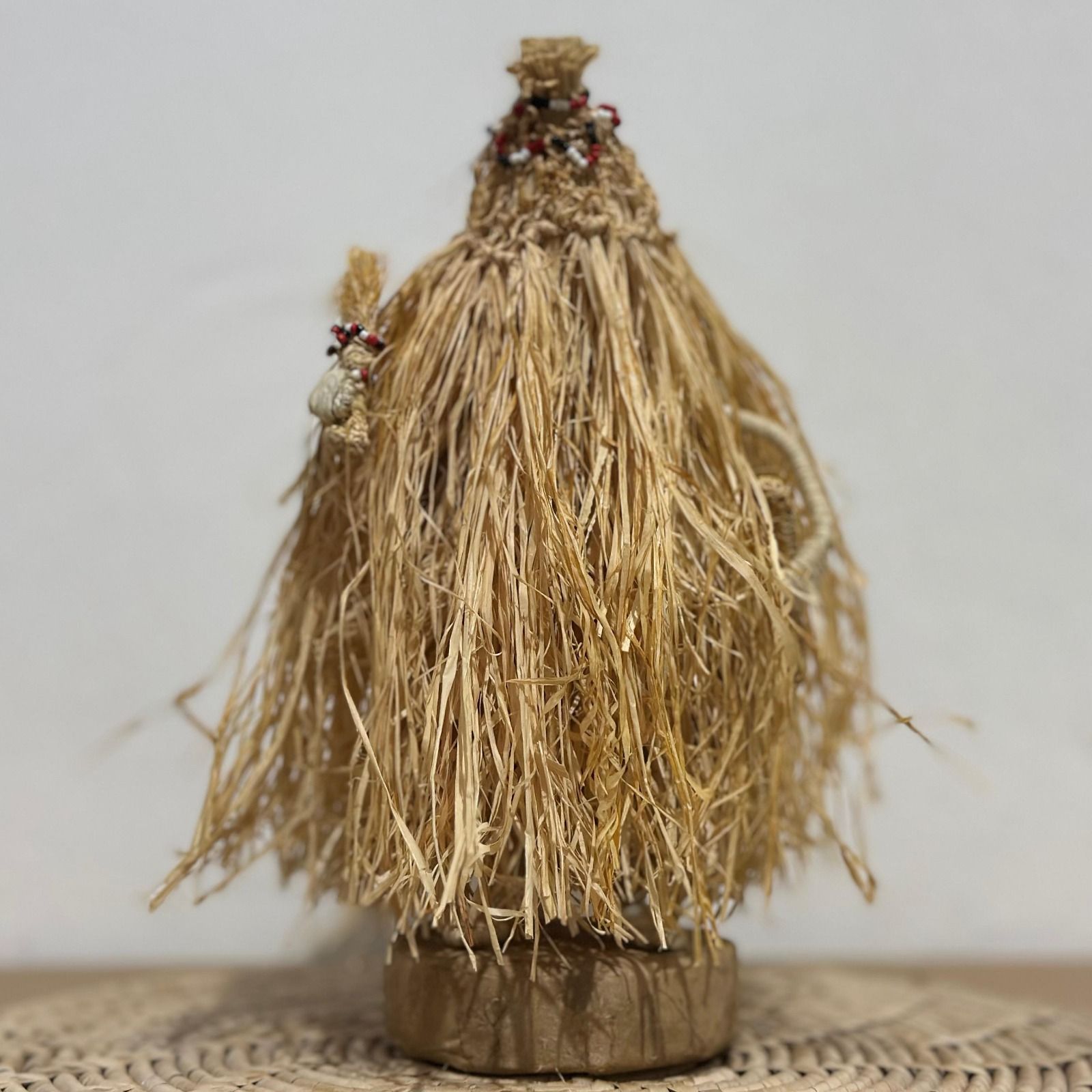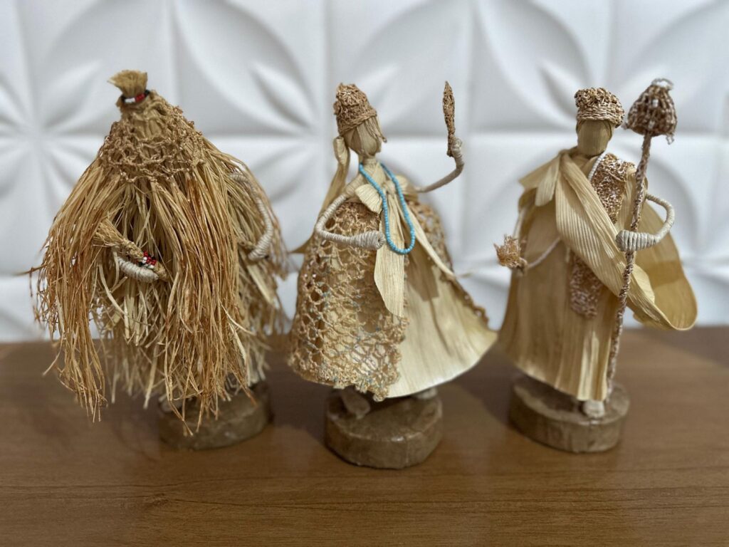 A transmissão de uma história ancestral está presente em cada detalhe de seu trabalho. A palha de milho, assim como o próprio milho, tem grande força simbólica no mundo espiritual, estando associada ao orixá Oxóssi. Por isso, seu trabalho é também um resgate. Não se trata apenas de contar a história da mãe ou da própria família, mas de dar continuidade à memória de um povo, de uma ancestralidade coletiva, frequentemente invisibilizada pelas práticas colonizadoras.