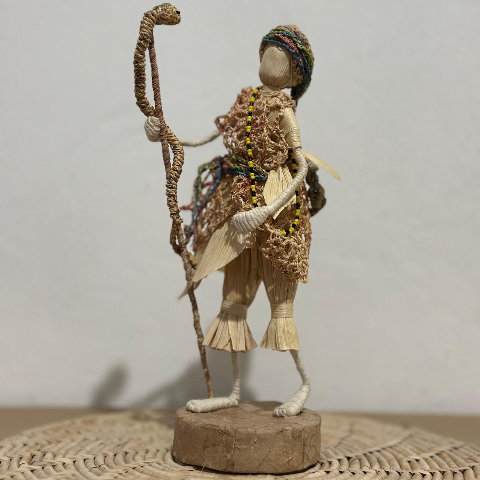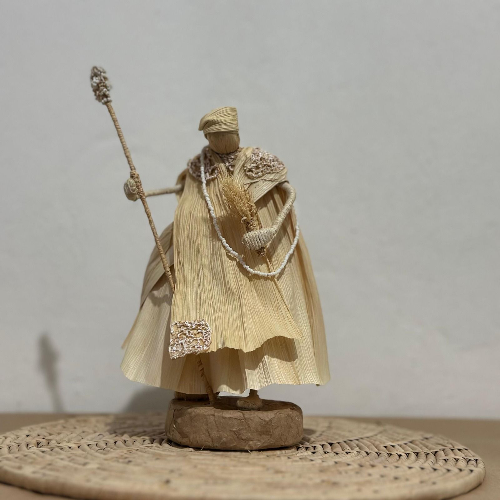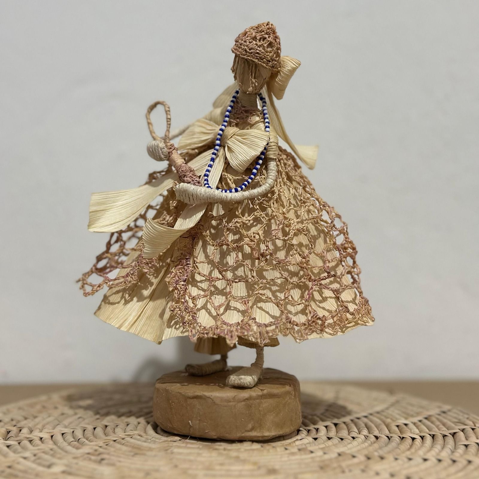 A transmissão de uma história ancestral está presente em cada detalhe de seu trabalho. A palha de milho, assim como o próprio milho, tem grande força simbólica no mundo espiritual, estando associada ao orixá Oxóssi. Por isso, seu trabalho é também um resgate. Não se trata apenas de contar a história da mãe ou da própria família, mas de dar continuidade à memória de um povo, de uma ancestralidade coletiva, frequentemente invisibilizada pelas práticas colonizadoras.