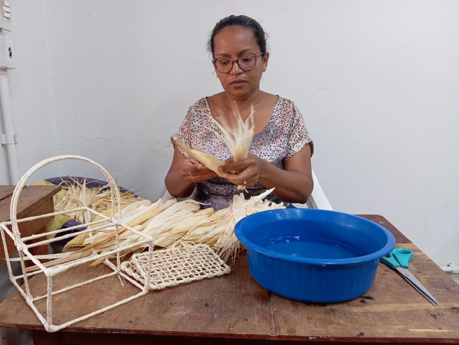 A reconhecida artesã Tecla, mãe de Eliene, junto com outros artesãos que trabalhavam de modo informal, se organizou com as freiras da Congregação de Santo Agostinho. As oficinas de transmissão de artesanato em palha de milho foram uma das primeiras atividades e estabeleceram o que veio a se tornar um pilar da associação: a troca de saberes de modo gratuito. Foi nesse contexto que Eliene, ainda na infância, realmente aprendeu o trançado em palha de milho.