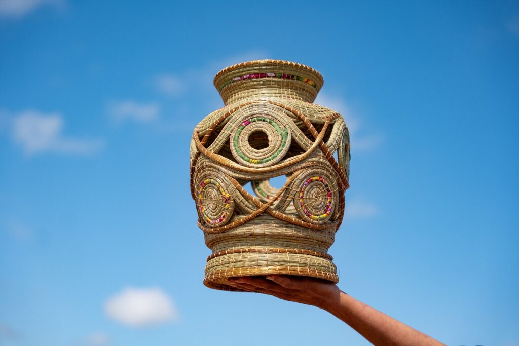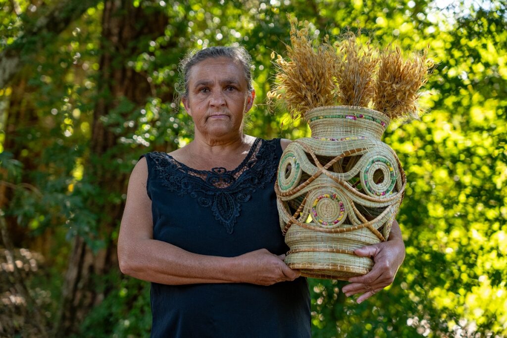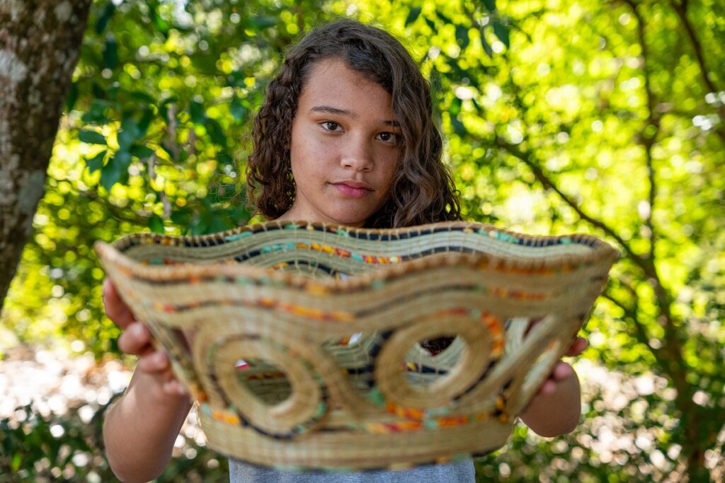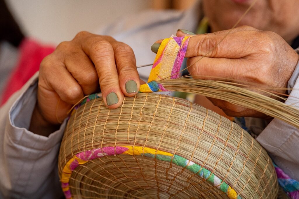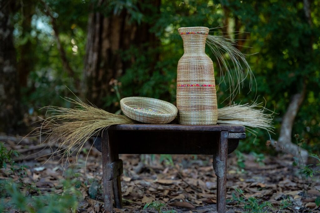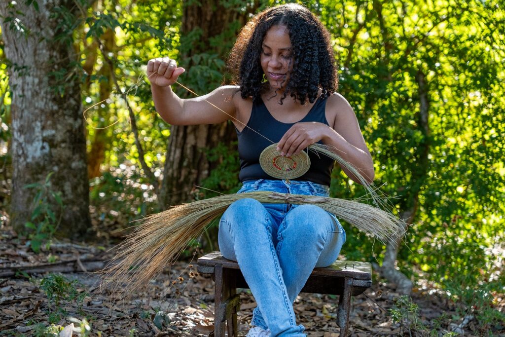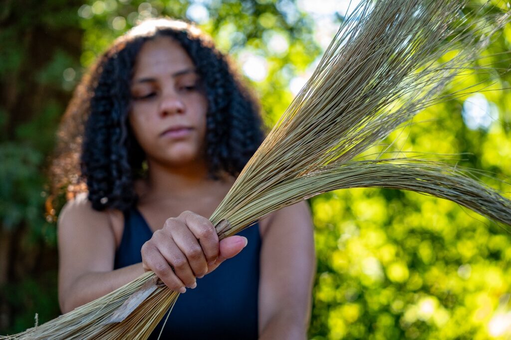 Assim, habilmente, a imaginação entrelaça flores ao capim e embeleza os dias. As horas passadas trançando se convertem em renda que ajuda na manutenção de suas casas. O trabalho artesanal amplia as perspectivas de suas vidas, e, ao estabelecerem novos contatos, elas conquistam horizontes que vão para além dos morros de sua comunidade.