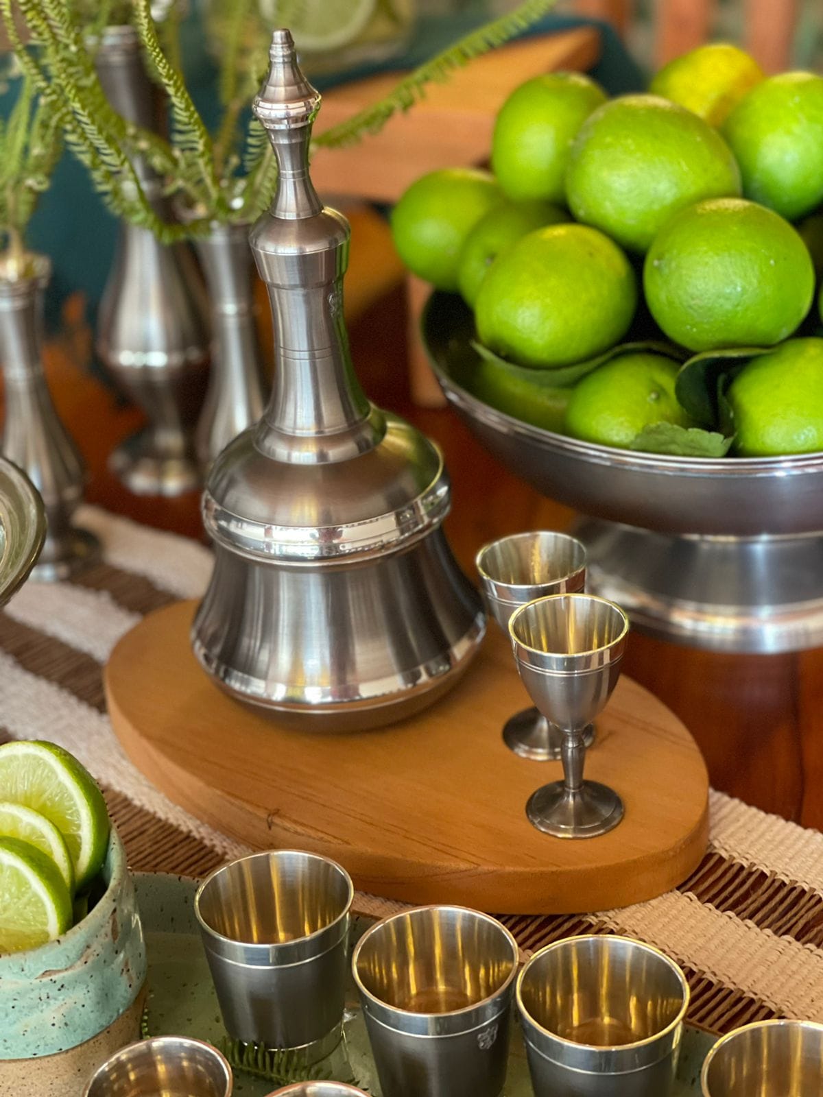 Entre as linhas ornamentais do rococó, os ângulos retos e os contornos orgânicos, a produção de Fábio e Deise dá forma ao macio — e eterno — estanho.