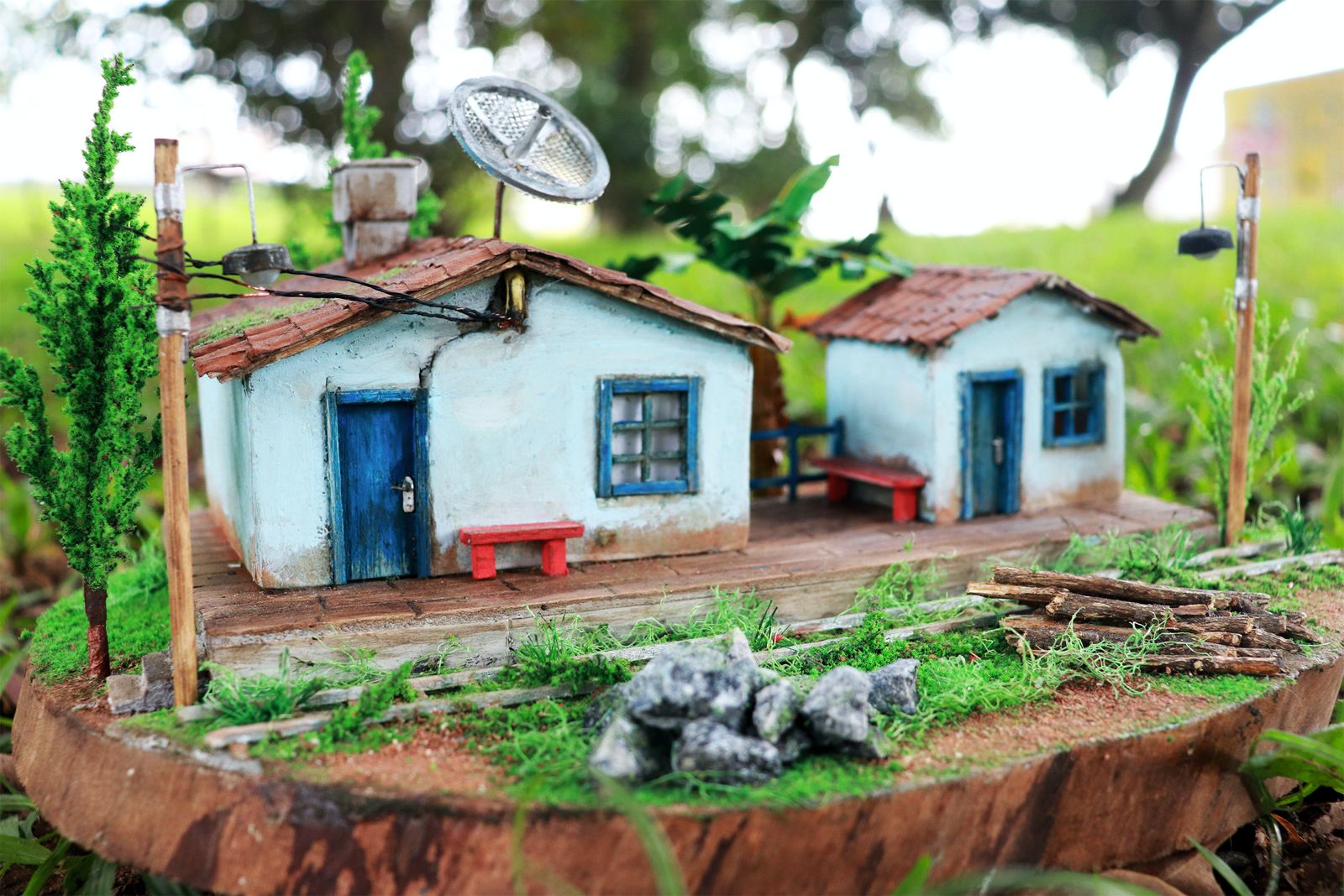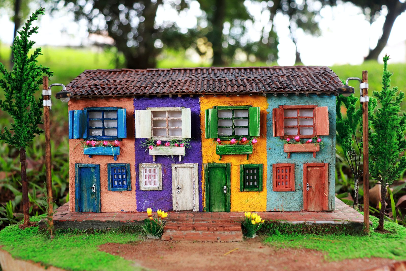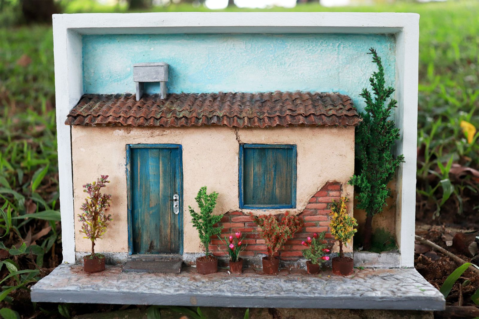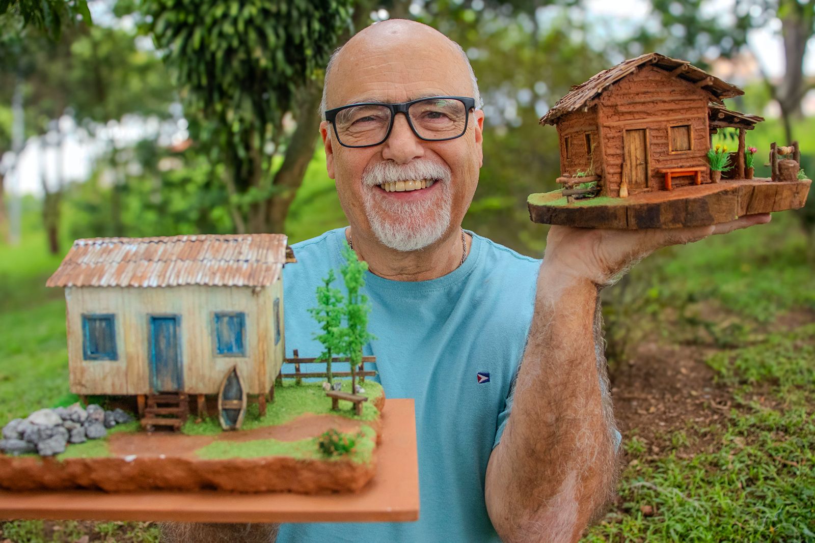 Um inventor de sonhos em miniatura, um guardião de memórias que cabem na palma da mão. Em suas mãos dança a magia de dar vida a casas de pau a pique, sítios perfumados pela nostalgia e cantos do Brasil que ecoam histórias antigas. Com materiais que outros descartariam, Roberto Constancio tece poesia visual, transformando sobras em saudade materializada, pequenas janelas por onde o passado espia o presente e sussurra: “não me esqueça”.