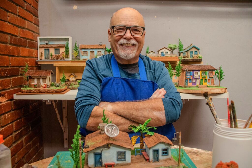 As mãos de Roberto sempre foram habilidosas – casinhas de boneca que faziam os netos sonharem, carrinhos que rodavam pela imaginação, pequenos universos que brotavam de pedaços de madeira. Quando seu genro sugeriu que experimentasse fazer minimundos, Roberto se encantou imediatamente. O primeiro curso pareceu básico demais para alguém que já dominava madeira e tinta há décadas, mas quando chegou às técnicas mais elaboradas, descobriu que suas mãos, mesmo com as mudanças, ainda tinham muito a oferecer.