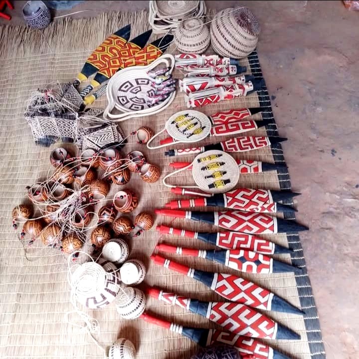 Das mãos habilidosas de Taffarel nascem peixes esculpidos em madeira de landim, pequenos animais como capivaras e onças-pintadas, além de remos que carregam a sabedoria do povo Karajá. A matéria-prima é buscada com cuidado a cerca de cinco ou seis quilômetros de sua aldeia, mantendo viva a conexão com a natureza que sempre guiou seu povo.